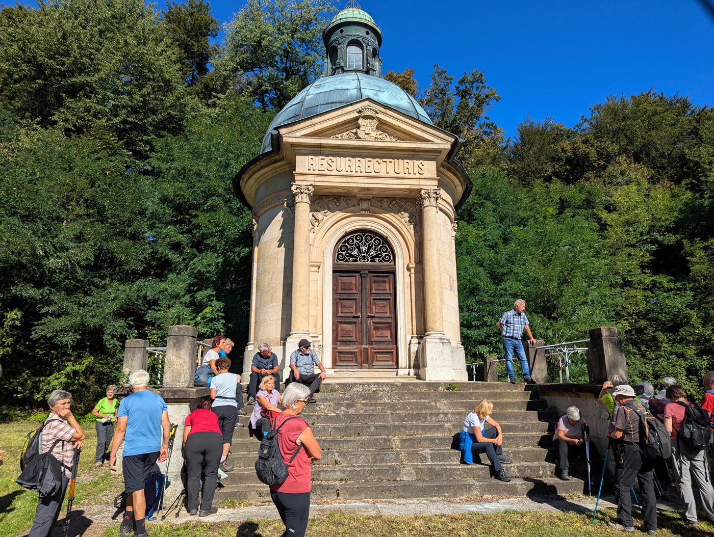 S predsednikom Mestne četrti Leskovec pri Krškem - Jožetom Olovcem se je skupina pohodnikov najprej povzpela med travniki in gozdovi do Šrajbarskega Turna in Mavzoleja nad njim. Tu je Jože Olovec predstavil bogato zgodovino gradu. Ob lepem sončnem vremenu smo nadaljevali po gozdnih poteh mimo vasi Loke, Volovnik v Selce. Na lepo urejenih športnih objektih so domačini postavili klopi in mize, Lojze Kerin pa je pripeljal okusne kranjske klobase. Ob osvežilnih napitkih smo ob prijetnem klepetu podaljšali počitek. Naš zadnji del poti nas je zopet odpeljal v senčni gozd v katerem smo se sprehajali ob vijugasti strugi dveh potokov. Za konec pa smo zaključili med vinogradi s katerih so se nam ponujali čudoviti razgledi na Krško polje, Gorjance, Libno, Sremič z Grmado in Trško goro. Mimo cerkve svete Ane smo se nato vrnili nazaj na izhodišče pohoda. Pohodniki so bili nad organizacijo in traso pohoda navdušeni, saj jih je večina te kraje obiskala prvič.