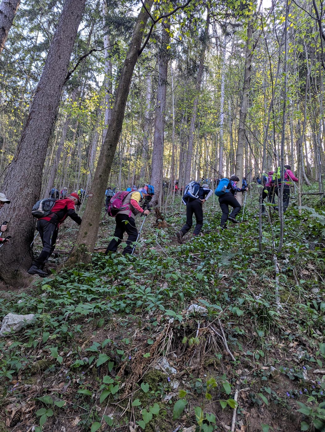 Čeprav smo v načrtu planinskih izletov načrtovali planinski izlet na Ratitovec, smo zaradi snežnih razmer spremenili omenjeno turo in se odločili za obisk Zasavskega hribovja. Vrh Krvavice je visok samo 909m, strm vzpon nanjo pa je pod samim vrhom tudi zahteven. Pri načrtovanju ture sva se z izkušenim planinskim vodnikom Francem Gričarjem dogovorila, da glede na številno skupino nevaren del poti zaščitimo z varovalno ograjo in tudi vzpon skozi zanimivo okno, skozi katero so postavljene jeklenice, previdno prehodimo. Načrt je uspel in v strnjeni koloni 46 pohodnikov smo ta del v počasnem tempu prehodili brez večjih težav. Na vrhu so bili ob lepem vremenu in čudovitih razgledih občutki pohodnikov naravnost vzhičeni. Sledil je spust po strmi krožni poti do sedla proti Čemšeniški planini. Previdno smo tudi ta del uspešno prehodili. Imeli smo malo daljši počitek, med katerim smo nekaj pojedli in popili. Vzpon na Čemšeniško planino smo nadaljevali po gozdni poti, ki je med posameznimi kmetijami kmalu prešla na travnike, s katerih smo uživali in občudovali lepo naravo tega področja. Ko smo ponovno zavili v gozd, se je pot začela ponovno strmo vzpenjati. Tempo hoje se je upočasnil, s posameznimi krajšimi postanki smo se odpočili in se brez težav povzpeli na 1.205m visoki Črni vrh. Sledil je spust do planinske koče, kjer so nam skuhali zelo okusno gobovo juho z ajdovimi žganci in joto. Po kosilu smo še malo posedeli v prijetnem sončnem vremenu pred planinsko kočo in popili kavo.