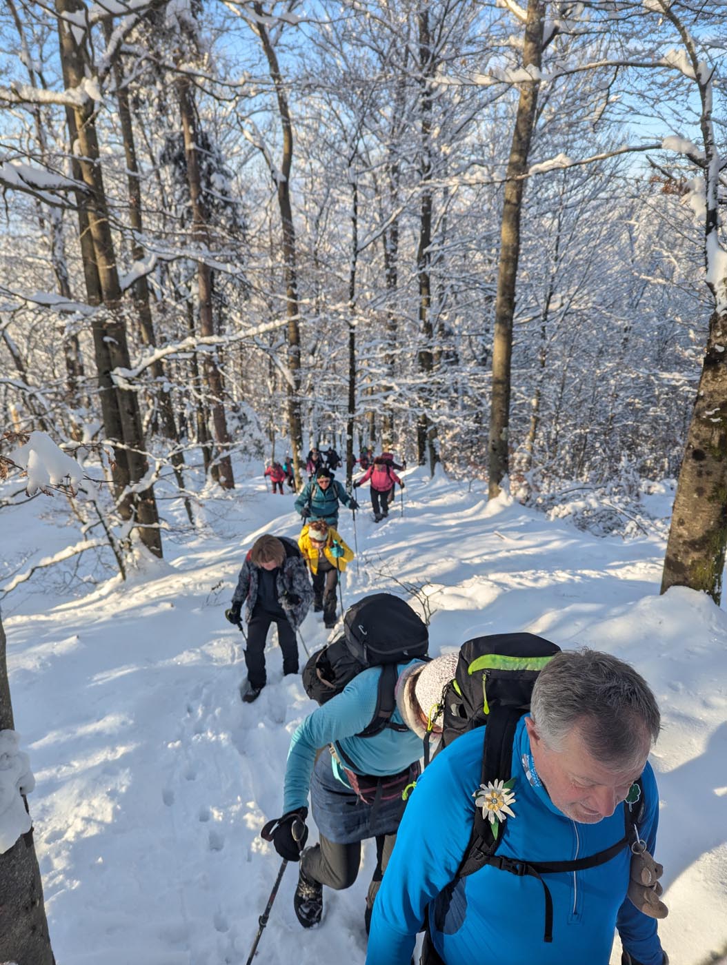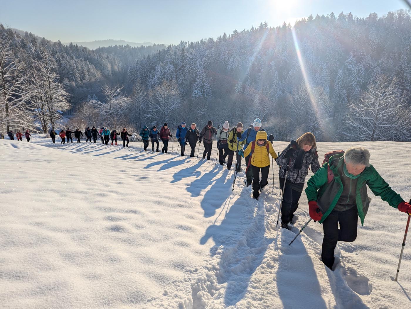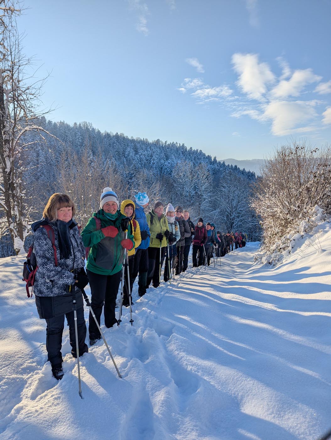 Ob pisanju vabila za naš prvi planinski izlet v letošnjem letu so bile vremenske razmere podobne kot smo jih imeli v zadnjih nekaj letih. A bolj ko se je bližal datum planinskega izleta, več je bilo snega in temperature zraka so bile vse nižje. Prijave udeležencev so prihajale, kaj sedaj? Odločili smo se, da gremo. Ob jutranjih -15 stopinj celzija na Železniški postaji v Brestanici in 40 minutni zamudi vlaka, smo v ogrevani čakalnici optimistično dobro razpoloženi počakali vlak. Na peronu smo opazovali grad Rajhenburg, ki so ga že obsijali sončni žarki. Iz reke Save pa so se dvigale hladne meglice. Na Železniški postaji Breg smo zapustili vlak, na hitro predstavili našo pot vzpona, pregledali opremo udeležencev in se po asfaltni cesti podali na pot. Po 15 minutah hoje po zasneženi asfaltni cesti, smo zavili na gozdno pot, ki se je strmo dvigovala na travnik. Sončni žarki so obsijali strmino, meglice, ki so se dvigovale iz reke Save so izginile in pokrajina je postala po iskrivem snegu čudovita. Ob ponovnem prihodu v gozd so nekateri že slekli tople bunde. Postanki pa so bili kljub temu kratki, saj so bile temperature zraka že vedno zelo nizke. Pod vasico Razbor smo opazovali lepo belo pokrajino proti Lovrencu, Velikem Kozju in v ozadju Kumu. Pri Sv. cerkvi Janeza Krstnika na Razborju smo imeli malo daljši počitek, ob katerem smo popili nekaj toplega čaja in pojedli nekaj suhega sadja. Ko smo hodili skozi vas smo opazovali naš cilj Lisco in okolico Posavskega hribovja. Na koncu vasi se je začel vzpon po zasneženem travniku, snežna odeja je bila vse debelejša, vseeno pa je bila v snegu dobra opora za varen korak. Nadaljevali smo po strmi gozdni poti, na kateri smo se večkrat ustavili in počakali, da se je dolga kolona zopet združila. Malo daljši počitek smo imeli ponovno pri cerkvi Sv. Jošta, kjer smo se malo osvežili s toplim čajem. Po dobrih treh urah smo tako prišli na veliki travnik, s katerega smo zagledali vrh Lisce in Tončkov dom. Nekaj se nas je odločilo, da se povzpnemo še na vrh, ostali pa so odšli v planinsko kočo. Z vrha se nam je pokazal lep razgled proti severu na Kamniško Savinjske Alpe in Julijske Alpe, proti vzhodu na Donačko Goro in Boč, na jugu na Sljeme in proti zahodu na Gorjance, v ozadju pa na Snežnik. V planinski koči so nam pripravili okusno gobovo juho z ajdovimi žganci, ričet in pasulj. Nekateri so popili še kavo ali čaj. Naši zvesti pohodnici Neži pa smo zapeli in nazdravili za rojstni dan. Po fotografiranju pred planinsko kočo je tudi sonce močneje posijalo in nam ob pravih zimskih razmerah omogočalo, da smo se po poti vzpona dokaj hitro spustili v dolino. Na železniški postaji smo z zadovoljstvom opazovali vrh Lisce, ki nam je omogočil pravo idilično zimsko avanturo, ki nam bo ostala še dolgo v lepem spominu.