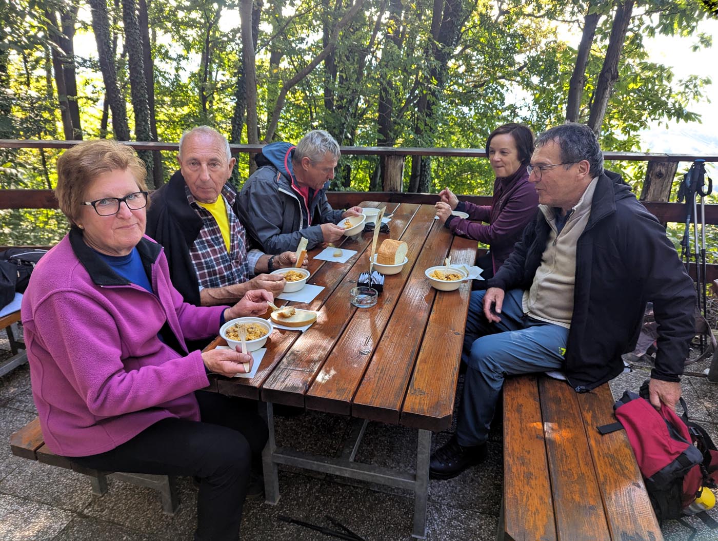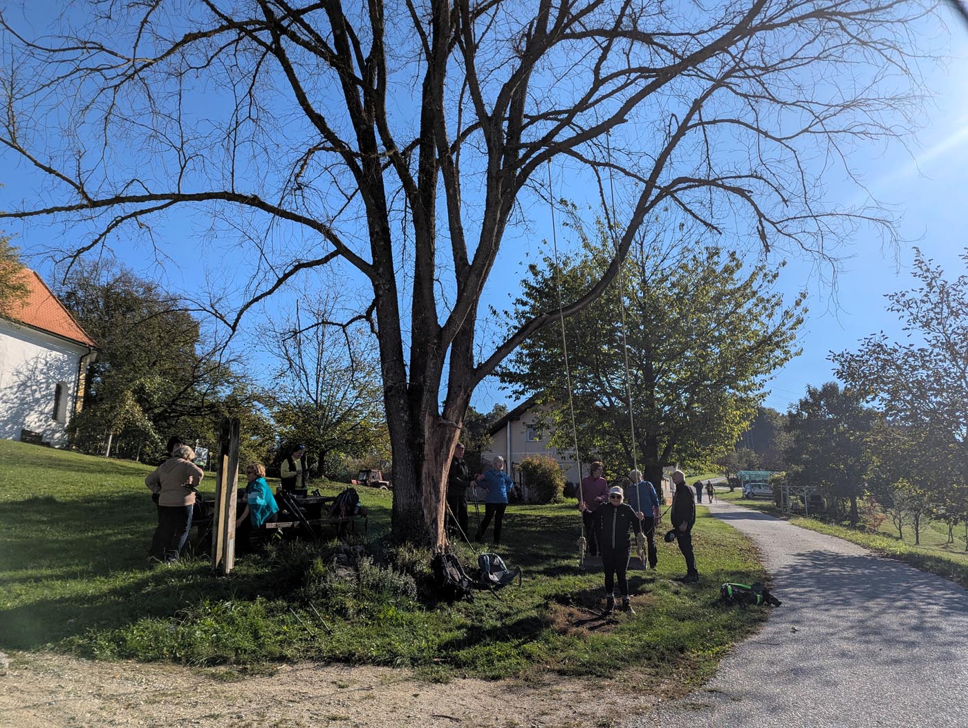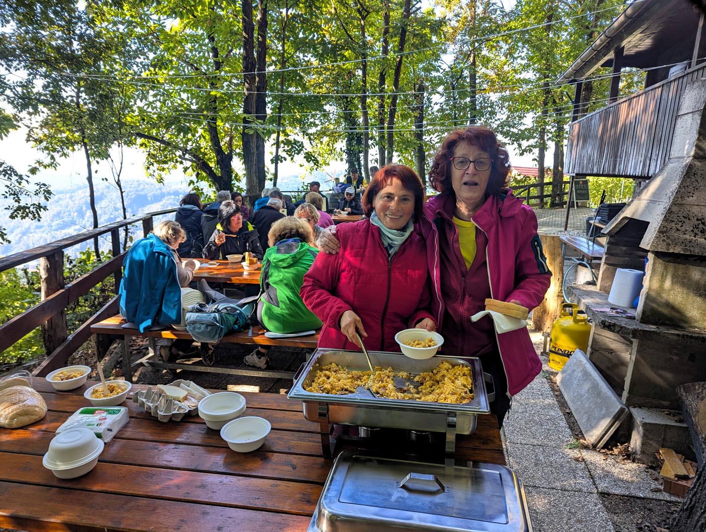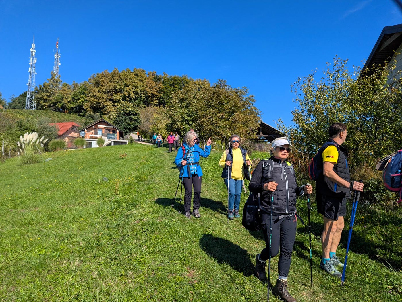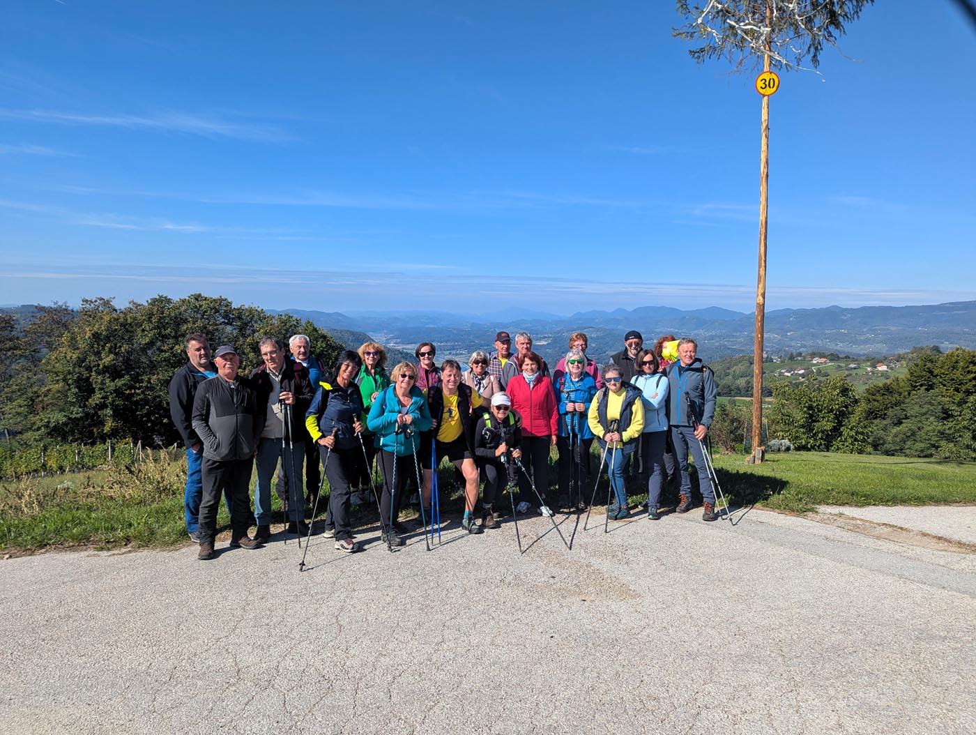 Zbrali smo se v središču starega Rajhenburškega trga, v katerem smo letos organizirali že 14 pohod okoli Brestanice. V hladnem jutru se je temperatura ob sončnih žarkih, ki so posijali na prireditveni prostor malo dvignila in skupino pohodnikov malo pogrela. Začeli smo s pohodom preko mostiča potoka Brestanica do cerkve sv. Petra. Tam smo naredili skupinsko fotografijo in predstavili nekaj zgodovine o najstarejši ulici v Brestanici – Šutna. Nadaljevali smo mimo nekdanje osnovne šole in se na koncu ulice začeli vzpenjati po strmi, lepo urejeni poti do cerkve sv. Mohorja. Krajši vzpon nas je dobro ogrel in ob krajšem počitku smo uživali ob čudovitih razgledih na dolino reke Save, grad Rajhenburg in okoliške vasice. Skozi vasico Sremič smo prišli do gozdne poti, po kateri smo prišli na najvišjo točko našega pohoda na Grmado 488m. Lepo jesensko vreme nam je z najvišje točke poti omogočil uživati ob čudovitih razgledih na Sljeme na jugu, Krško polje in Gorjance proti zahodu in na Zasavsko hribovje proti severu. V planinski koči smo pohodnikom ponudili umešana jajca s slanino. Pred spustom v dolino smo se ustavili še pri Nandetu v zidanici, kjer smo se še malo osvežili. Sledil je spust skozi neselje Bučerca in Ponikve v Anže. Pri nekdanjem perišču smo se pogovarjali, kako so nekoč prali perilo. Poleti je še šlo, pozimi pa je bilo verjetno malo težje. Pred zadnjim vzponom na Raztez smo se ustavili pri Danici, ki nam ponudi vsako leto nekaj sladkih dobrot. Letos je spekla štrudl in ponudila osvežilne napitke. Zaključek na Raztezu je bil letos ponovno ob bogato obloženih mizah čudovit. Žal se srečanja z nami ni udeležilo veliko domačinov, ki so morali tokrat pred slabim vremenom pospraviti pridelke. Zaradi tega je padla ideja, da prihodnje leto ponovno organiziramo pohod konec meseca maja.
